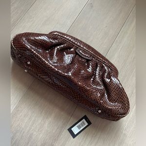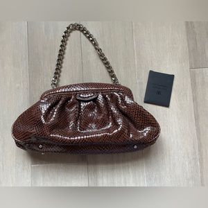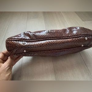 Beautiful brown leather bag with snakeskin feel.