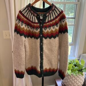 The Handknitting Association of Iceland Fair Isle Wool Cardigan Sweater Large