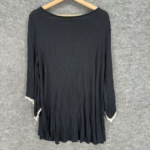 The Hanger Blouse Women L Large Black Cross Embroidered 3/4 Sleeve Round Neck