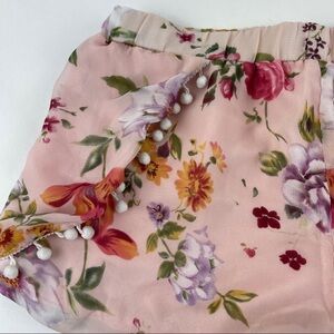 The Hanger Shorts Women's Small Pink Floral Tassels Elastic Waist