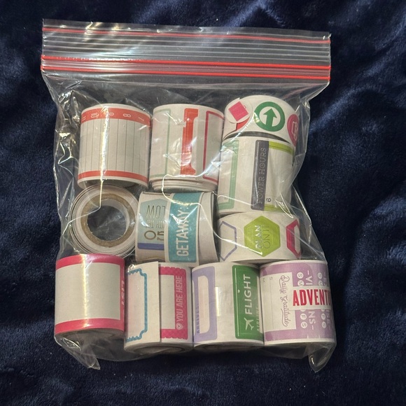 Organize with vibrant label stickers. Includes red, pink, green, and purple designs. Perfect for planners and crafts. Travel and hourly planning