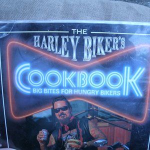 The Harley Biker's Cookbook: Big Bites For Hungry Bikers by Owen Rossan. Hardcover. Ex library book with clear library cover over dust jacket. Has some library marks, stamps, etc. Publisher: Crescent Books, 1997. ISBN: 0517184796. Good condition. No torn pages, not written in other than library marks. Great book for fans of biker gatherings. Lots of good recipes.