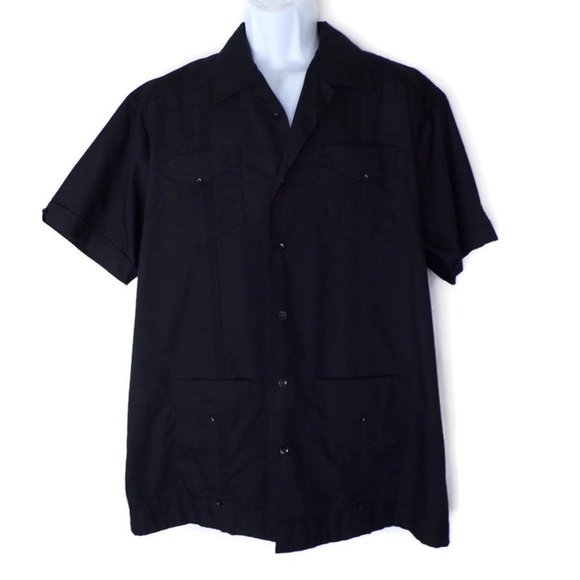 The Havana Co. Men's Guayabera Short Sleeve Black Size L