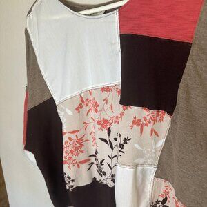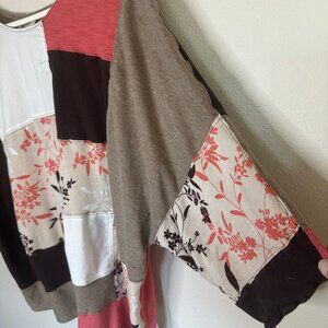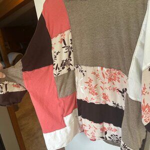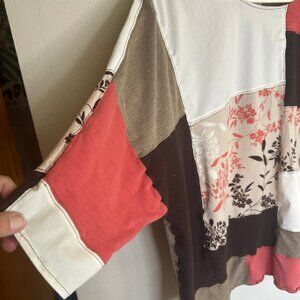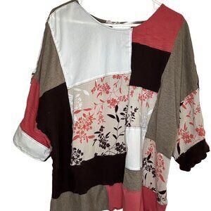 The Hazel Womens Size Large Boxy Fall Top Brown White Pink Rustic Patchwork