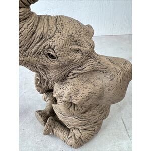 This figurine depicts Peanut Sr. Elephant #3136 from The Herd collection by Martha Carey. The elephant is crafted with great attention to detail and captures the essence of this majestic animal. The figurine is made of high-quality materials and has minor imperfections that add to its authenticity. One of the tusks is missing and there are a few small chips on the surface, but they do not detract from the overall beauty of the piece. This collectible is perfect for any elephant lover and will make a great addition to any collection.
