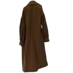 The Hidden Bee Puff Sleeve Cotton Tan Maxi Open Trench Coat Size M