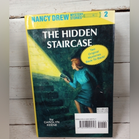 The Hidden Staircase, The Secret of the Old Clock, a pair of Nancy Drew Mysteries Carolyn Keene, 1987 Hard Cover. Has some light wear. Condition is pre owned, used, good condition.
