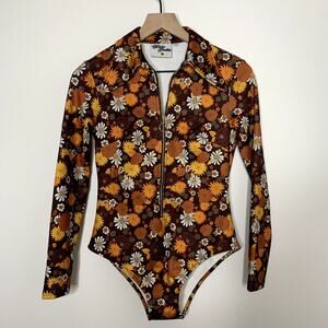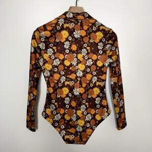 The Hippie Shake Heroe Floral Brown Bodysuit Longsleeve Top Womens Size 8