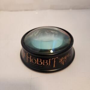 Add a touch of Middle-earth to your desk with this charming paperweight! Featuring a scene from The Hobbit: An Unexpected Journey, this 4x4 inch collectible is perfect for fans of the series. It's in excellent condition and ready to keep your papers organized in style. This paperweight is a delightful gift for any Tolkien enthusiast or a unique addition to your own collection. Grab it now and bring a piece of the Shire into your home or office!