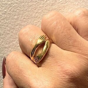 The Hold Me Close hand holding” or hug” adjustable ring in 18k