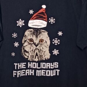 The Holidays Freak Meowt Cat Graphic Alstyle Crew Neck Cotton Navy T-shirt 2XL