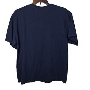 Holiday Cat graphic short sleeve crew neck dark navy blue tee
