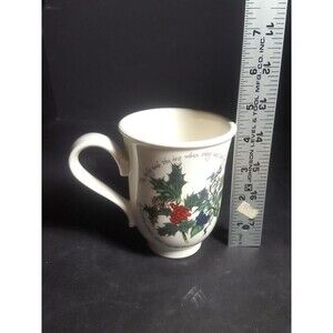 The Holly and The Ivy Christmas mug. Beautiful Green Holly and Ivy adorn both sided of this mug. It has some of the song written around the holly and the ivy This is in new condition . I have several pieces from this pattern if needed. Please zoom in on photos for detail as pictures are part of the description. If you have any questions, please contact me before purchasing. We have a smoke free environment
