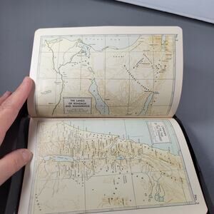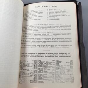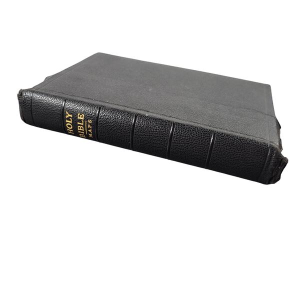 This vintage Holy Bible (King James Version), published by the American Bible Society, was first set forth in 1611 and published by the Society in 1816. It features detailed maps of Bible lands, gilt-edged pages, and a durable black leather hardcover. This copy was given as a gift in 1941, adding historical and sentimental value.
