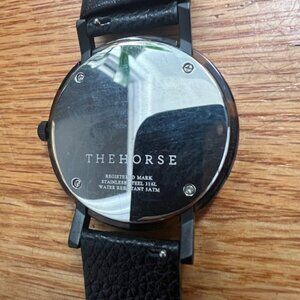 The Horse Watch: Black leather band / tourtise shell trim / black face