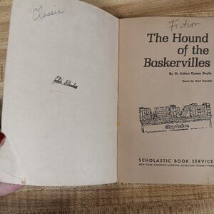 The Hound of the Baskervilles novel by Sir Arthur Conan Doyle is a vintage paperback book published by Scholastic, Incorporated in 1975. This classic piece of literature is part of the Sherlock Holmes character family, making it a must-have for fans of detective fiction and English language literature. With its timeless story and iconic character, this vintage paperback is a valuable addition to any collection of antiquarian and collectible books.