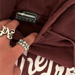 -used lightly, has some sun fading and a tear on the hole of the drawstring, still a dope hoodie for the low