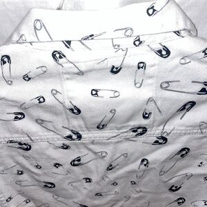 The Hundreds Men’s Denim Shacket Size XL White Safety Pin Motif Streetwear NWT
