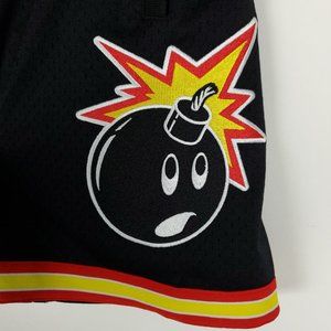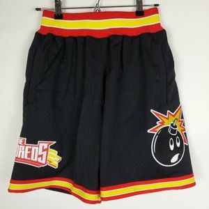 The Hundreds x Mitchell & Ness NBA Jersey Shorts XS XSmall Black Red Yellow Atom Bomb Art NWT