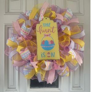The Hunt is On Mesh Ribbon Easter Wreath Front Door Hanger Home Decor