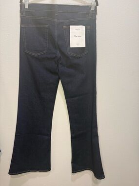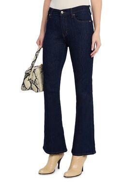 Stylish dark indigo denim with a subtle wide leg silhouette. Clean five-pocket design and contrast stitching. Comfortable rise for everyday wear. Pairs well with boots or heels.