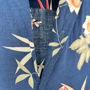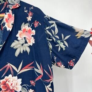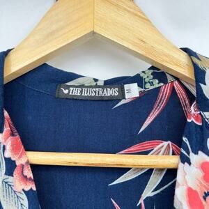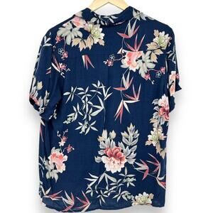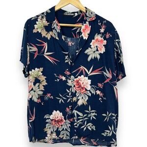 The Ilustrados Women's M Blue Short Sleeve Floral Collared Button Down Blouse