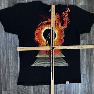 This is a black crew neck tee from The Imaginary Foundation. Tag reads 100% cotton, made in U.S.A. Graphic “IF” front design in bold contrast. There’s no major damage, just minor fading and slight signs of wear at seams. Check all photos closely for condition details.