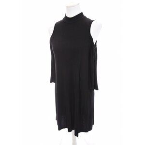 The Impeccable Pig Anthropologie Black Cold Shoulder Mock Neck A Line Dress Sz S