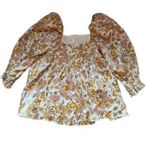 - This Puff Sleeve Blouse is the perfect floral blouse to transition to fall! This blouse is draped in elaborate puff sleeves and metallic finish. Pair with denim and sandals for a feminine chic look.