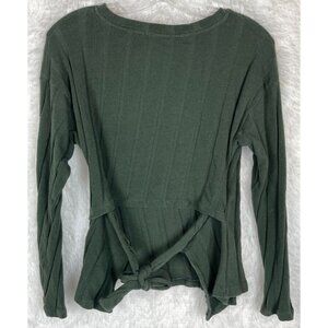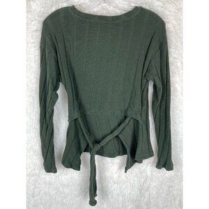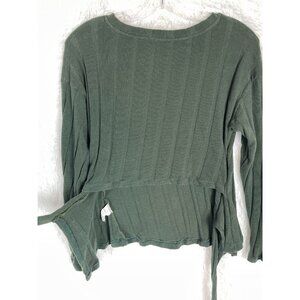 The Impeccable Pig Medium Long Sleeve Half Back Green Knit Top Tie Behind Stripe