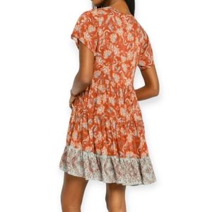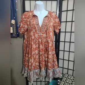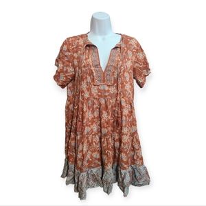 The Impeccable Pig Rust Paisley Boho Tunic Mini Dress sz L