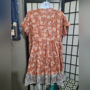 GUC This lovely dress is from The Impeccable Pig boutique. It is a rust and light blue color paisely print boho tunic mini dress. Flowy, above the knee length. In very good used condition.
