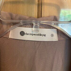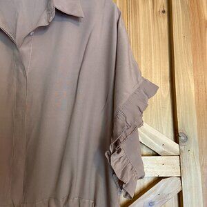 The Impeccable Pig Shirt Womens Small Oversized Tan Ruffle Sleeve Blouse