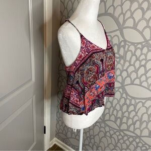 The Impeccable Pig Size S Boho Cropped Blouse V Neck Spaghetti Straps Fuchsia
