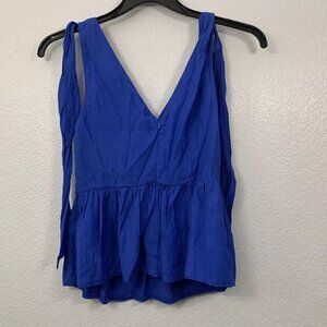 The Impeccable Pig Womens Blouse Top Size S Blue Sleeveless Tie Sleeve Peplum