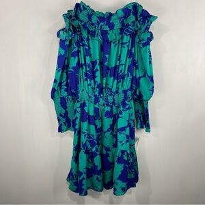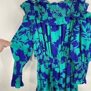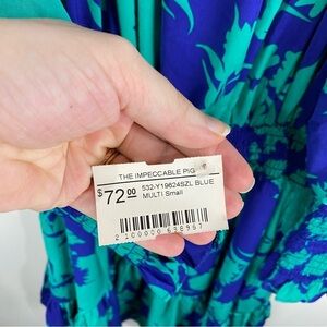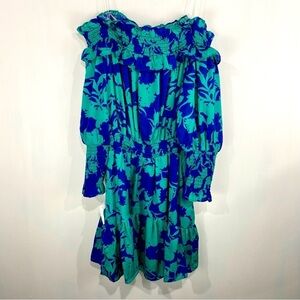 The Impeccable Pig Tropical Floral Print Ruffle Cinched Mini Dress Small (NWT)