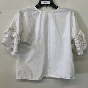 The Impeccable Pig Womens White Cotton Layered Crochet Sleeves Blouse Size Small