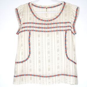 The Impeccable Pig Womens Top Size Small Cream Tribal Print Boho