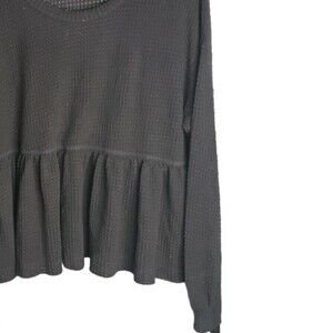 The Impeccable Pig black lightweight waffle knit long sleeve peplum top medium. Excellent used condition. A13