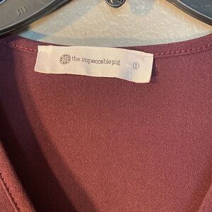 The Impeccable Pig Maroon Flare Ruffle Sleeve Shift Dress Size Small. Great for a summer wedding or even to wear to the office. Please ask any questions you have. Bundle and Save!