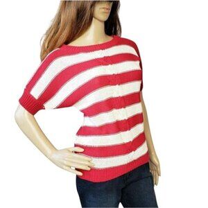 The Import Workshop Red & White Striped Short Sleeve knit Sweater L christmas