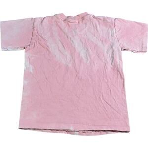 Features “The Incredible Hulk” text in neon green with a gritty comic book feel. 1990s v-neck tee in a faded pink with bleach-wash marbling and bold front graphic of a cartoon-style Hulk mid-punch. Good condition.
