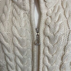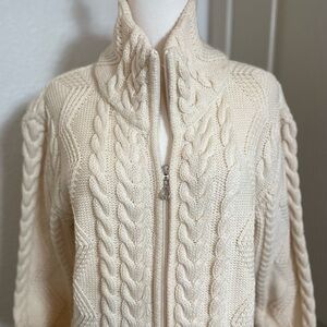The Irish Store Cream Cable Knit Wool Zip Cardigan Sweater