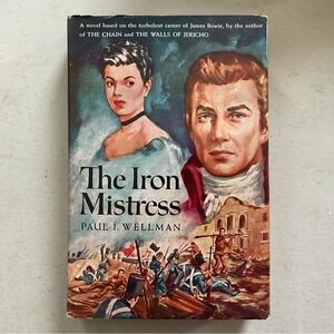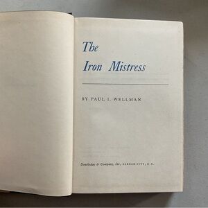 The Iron Mistress by Paul I. Wellman. This is a hardcover book. It was published by Doubleday in 1951. This book has 404 pages. It is approximately 8 1/2” long x 5 3/4” wide x 1 1/4” thick. This book is in great vintage condition. Binding is in great shape, slight wear to the dust cover, no writing in the book, no torn pages, no discoloration to the pages. Smoke free home.