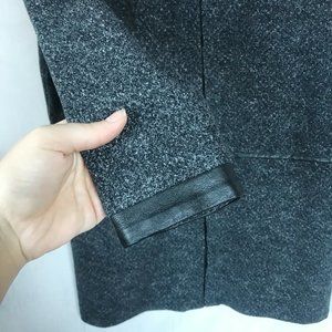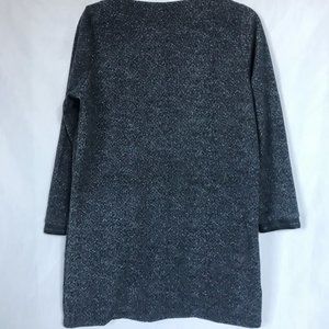 The Izzat Collection Modern Charcoal Long Sleeve Scoop Neck Sheath Dress with Black Leather detailing
