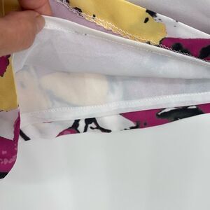 Elevate your formal wardrobe with these stunning pants from The J. Peterman Company. These wide-leg pants feature a beautiful floral pattern, white base with purple and yellow color tones, perfect for any wedding, party/cocktail, or business occasion. The pants are made of high-quality polyester and nylon chiffon fabric, fully lined with a comfortable interior, and feature a hidden side zip closure for easy wear.