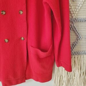 The J. Peterman Company Red Christmas Fleece Button Up Jacket Size S