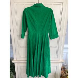 The J. Peterman Company size 2 long sleeve green midi dress with pockets. Excellent condition. 100% cotton. Measures 18 1/2” from armpit to armpit. 14” across the waist and it is 49” long.