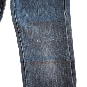 These Hollywood Boys Jeans by The Jean People in size 8 are a stylish choice for young boys. These black washed straight leg jeans feature an adjustable waist for a comfortable fit. Made from a blend of polyester and cotton, these denim jeans are perfect for casual occasions and have a classic zip and button closure. With pockets for practicality, these jeans offer both style and functionality for boys looking to upgrade their wardrobe. They have signs of wear such as fading and pilling and one leg has what appears to be a snag line.