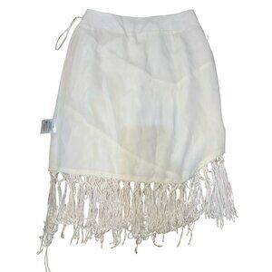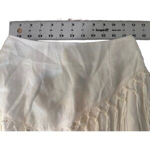 The Jetset Diaries Fringe Mini Skirt Womens XS White Asymmetrical Lined Bohemian